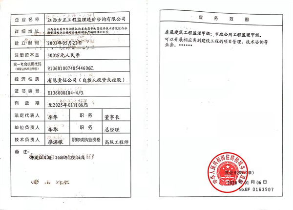 房屋建筑工程监理甲级、市政公用工程监理甲级